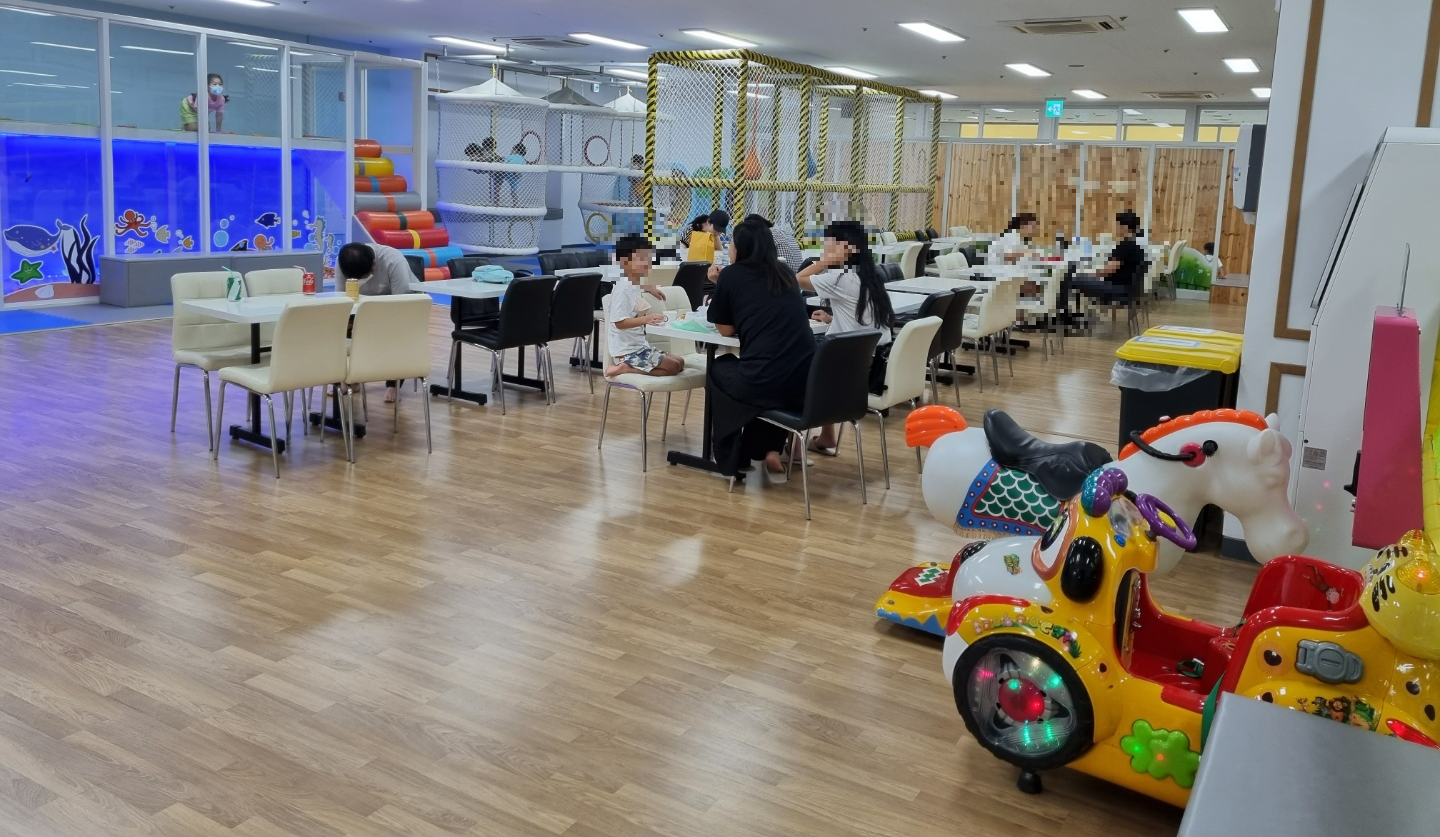 플레이원 내부 곳곳에 엄마들이 앉아서 쉴 수 있는 곳이 마련되어 있어서 편했습니다. 좌식으로 앉는 곳도 있고 위의 사진처럼 테이블과 의자가 마련된 좌석도 많았습니다. 확실히 평일에 방문해서 그런지 한산해서 더 좋았던 것 같습니다.